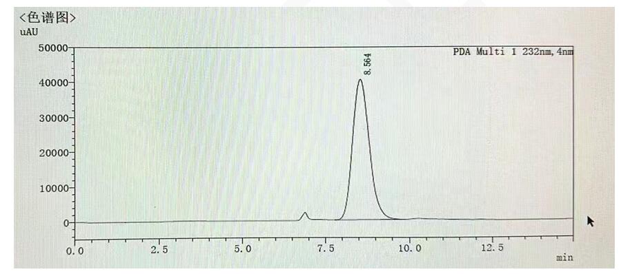 App ID: FLM-M250001 MARS MCa 柱對醫(yī)藥輔料及食品中透明質(zhì)酸鈉含量的測定 色譜柱:MARS MCa 10u 7.8*300mm (貨號:FMH-1130-KONU) 流動相:1%磷酸 流速:0.6 mL/min 檢測波長:232nm 柱溫:40℃ 樣品濃度:1mg/ml 進樣量:20ul 方法參照團體標(biāo)準(zhǔn): T/SNHFA 012-2021 食品中透明質(zhì)酸鈉含量的測定 稀釋劑:磷酸鹽緩沖液(pH6.0):稱取磷酸二氫鈉(5.1.1)27.4 g、磷酸氫二鈉(5.1.2)8.8 g,置1000 mL 容量瓶中,加水稀釋至刻度,搖勻,得 0.2 mol/L 磷酸鹽緩沖液。 檢測原理:來源于細菌的透明質(zhì)酸酶在適宜條件下,作用于透明質(zhì)酸鈉β-1,4 糖苷鍵,通過β消除反應(yīng)生成不飽和透明質(zhì)酸鈉雙糖(ΔDiHA),采用高效液相色譜法測定,外標(biāo)法定量。 色譜圖: