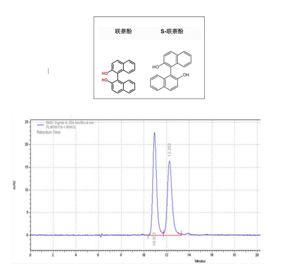 App ID: FLM-B250006 聯萘酚與S-聯萘酚的分離 色譜柱:Chiral INC 250*4.6mm,5um (貨號:FMG-JY5-I03) 流速:0.5 mL/min 檢測:波長254nm, 柱溫:25°C 樣品濃度:N/A 進樣量:1μ 溶劑:水:甲醇=40:60(V:V) 流動相:咨詢銷售