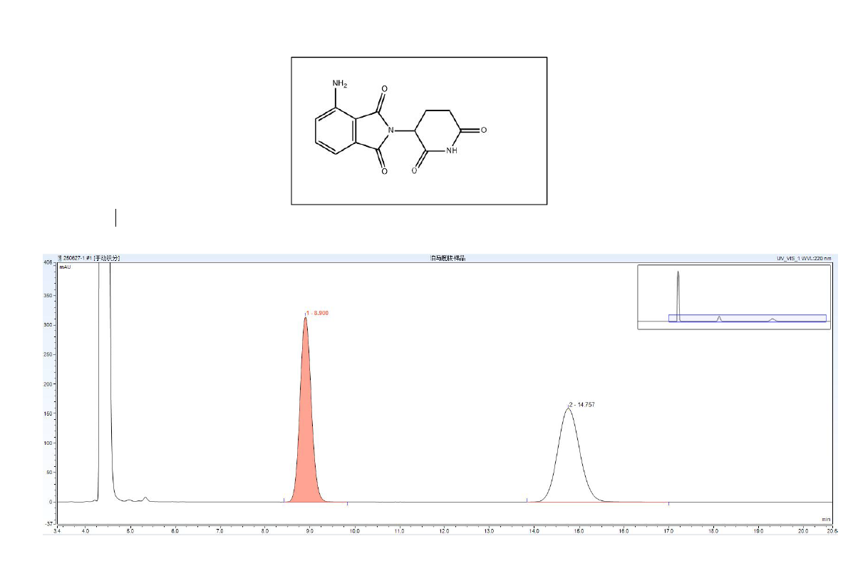 App ID: FLM-B250011 Chiral NQ(2)-RH 手性色譜柱對泊馬度胺的檢測 方法:自定 色譜柱: Chiral NQ(2)-RH 5u 250*4.6mm (貨號(hào):FMG-AC5-A06-R) 流速:0.8mL/min 檢測:UV 220nm 25oC 樣品濃度:N/A 進(jìn)樣量:2uL 流動(dòng)相:咨詢銷售 色譜圖: ![]() |